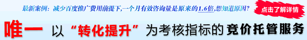 答:竞价推广转化提升有多方面的渠道,一是百度竞价账户的优化,二是网站转化率的优化,三是客服成交能力的优化。竞价优化能够解决第一个问题,如果您网站本身转化率也有很大问题,您可以了解下我们的聚卓网站转化率提升解决方案,地址:http://www.jz182.com/service/sro/